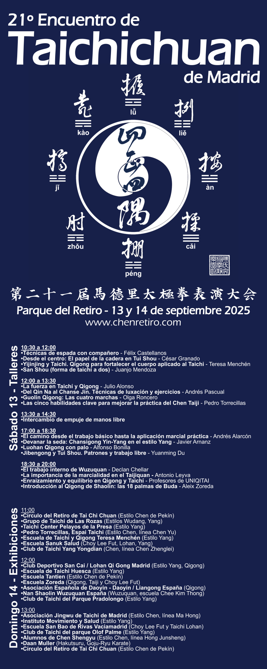 El 21º Encuentro de Taichichuan y Chikung de Madrid se celebró los días 13 y 14 de septiembre de 2025 en los Jardines del Buen Retiro.